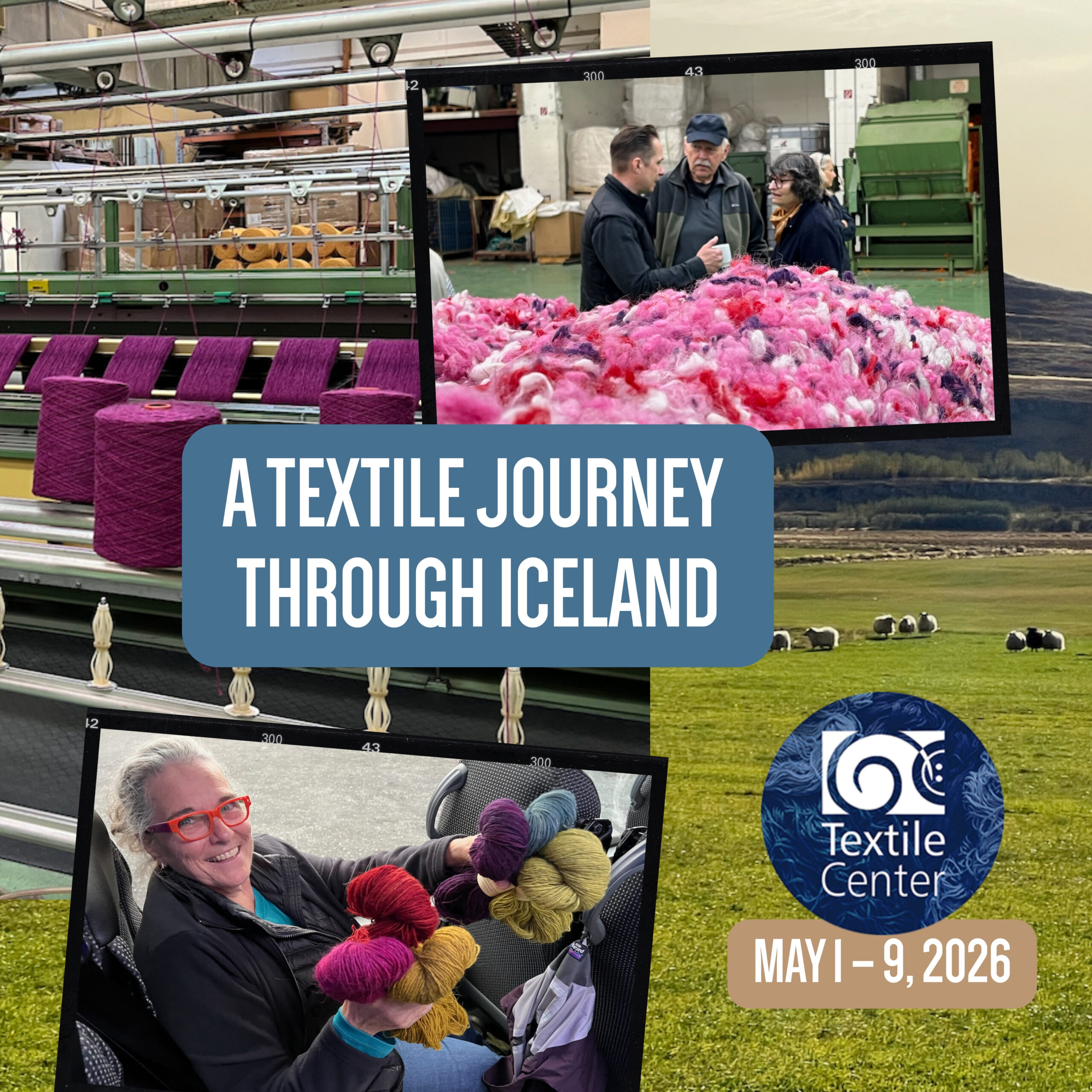 This will be our fourth trip to the beautiful Nordic nation, May 1 – 9, 2026, hosted in partnership with Blueprint Tours, Inc., in the United States and Travel Beyond in Iceland. Join Textile Center’s Executive Director Karl Reichert and our Icelandic guide Hjálmár Óskarsson of Travel Beyond for an adventure that includes opportunities such as: