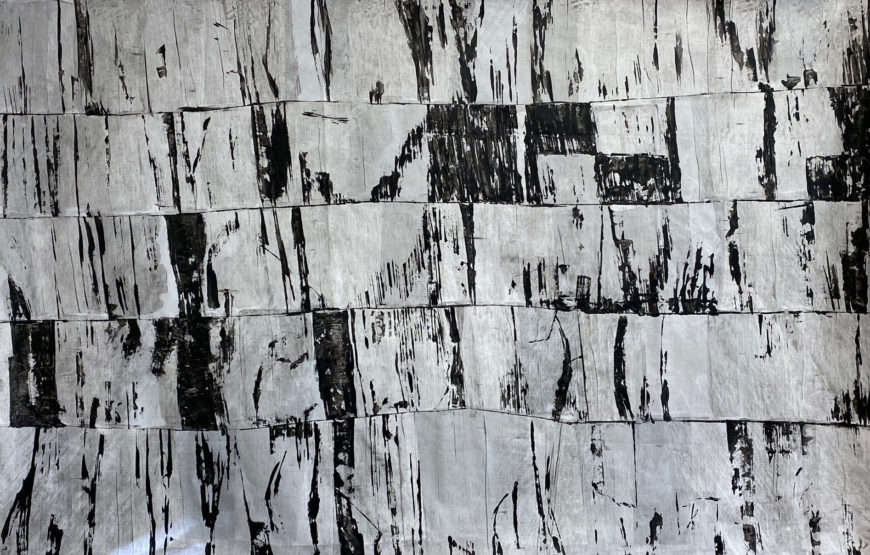 Last year, Priscilla was called to balance the artwork she normally makes with art related to social justice and political activism. “I started what I’ll call a meditative series — acrylic lines and marks on cloth. I currently have a solo exhibition at our local Unitarian Church. Two walls are filled with political work, and two with my meditative pieces.”