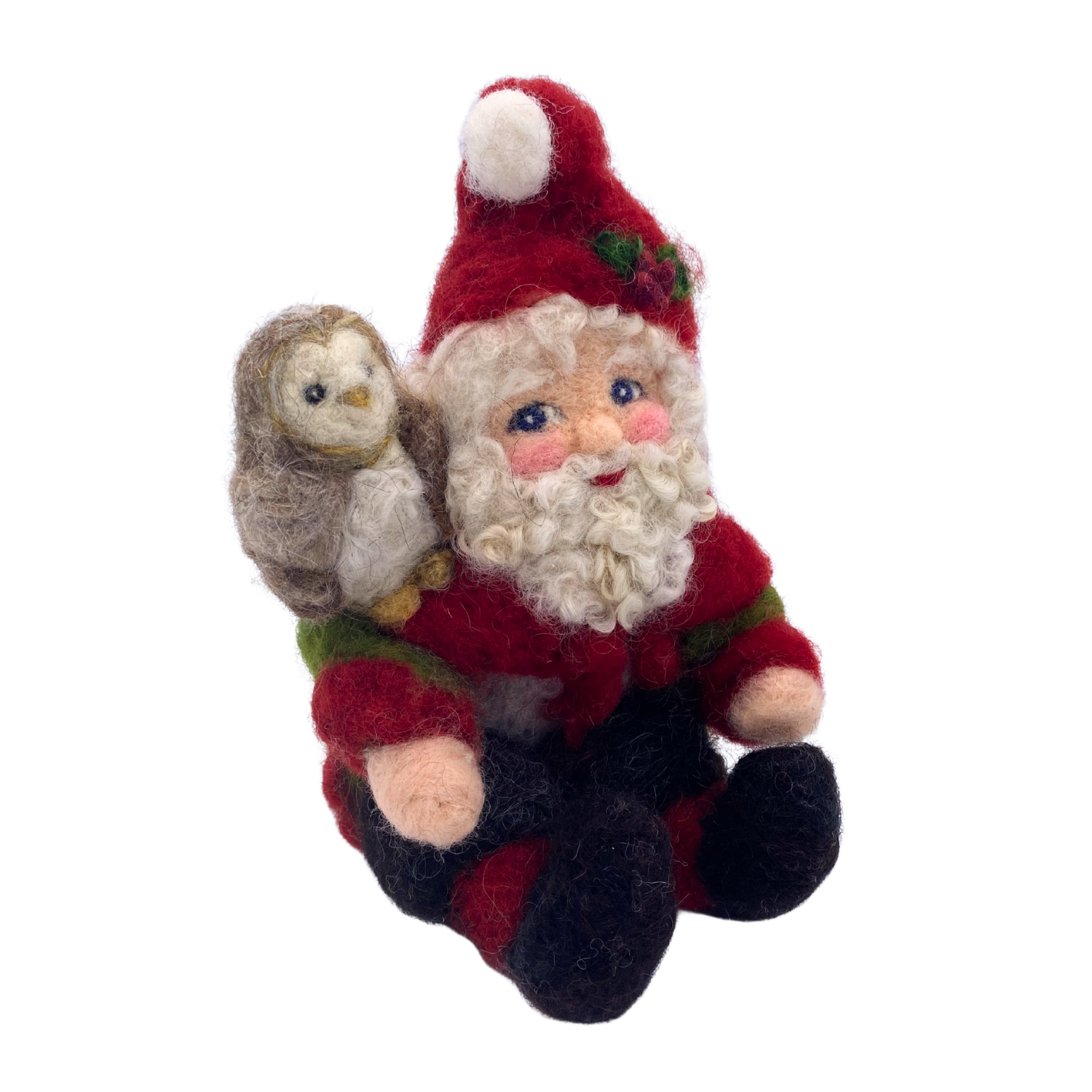 For more than 20 years, Elsa Jo Ellison, a native of Wanamingo, Minnesota, has been sculpting wool from the sheep at the Ellison Sheep Farm. She has created an endless variety of original needle felted figures and creatures, each with its own personality, detailed eyes, and unique expression. The Ellison Sheep Farm in Zumbrota, Minnesota, raises Shetland, Icelandic, and Gotland sheep, and the entire family helps with sheep shearing every spring. Her favorite fleeces are set aside, labeled with each sheep’s name, then washed, carded, and dyed by hand in small batches.